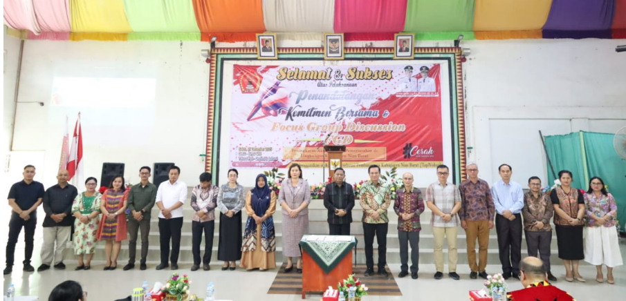 Nias Barat – Dinas Pendidikan Kabupaten Nias Barat menyambut baik pelaksanaan kegiatan Penandatanganan Komitmen Bersama dan Focus Group Discussion (FGD) yang diselenggarakan oleh Tim Akselerasi Pembangunan Kabupaten Nias Barat (TapNisbar) pada Sabtu, 27 Desember 2025, bertempat di Tokosa Hall, Kabupaten Nias Barat.